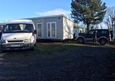 Notre équipe utilise des véhicules tout-terrain pour déplacer les Mobil homes, assurant un positionnement optimal et préservant l'intégrité des structures, des habillages et des environnements.
