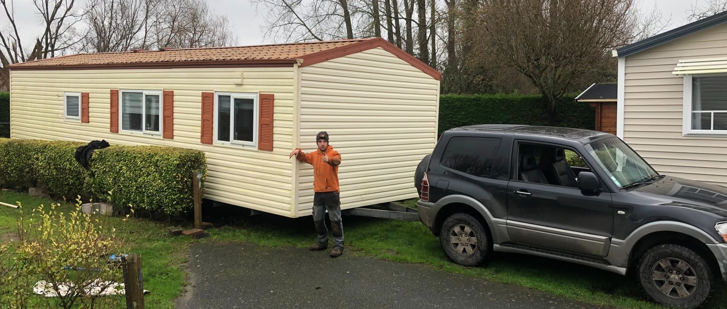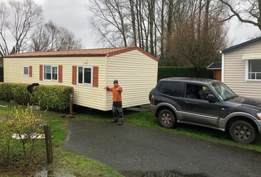 Notre équipe utilise des véhicules tout-terrain pour déplacer les Mobil homes, assurant un positionnement optimal et préservant l'intégrité des structures, des habillages et des environnements.